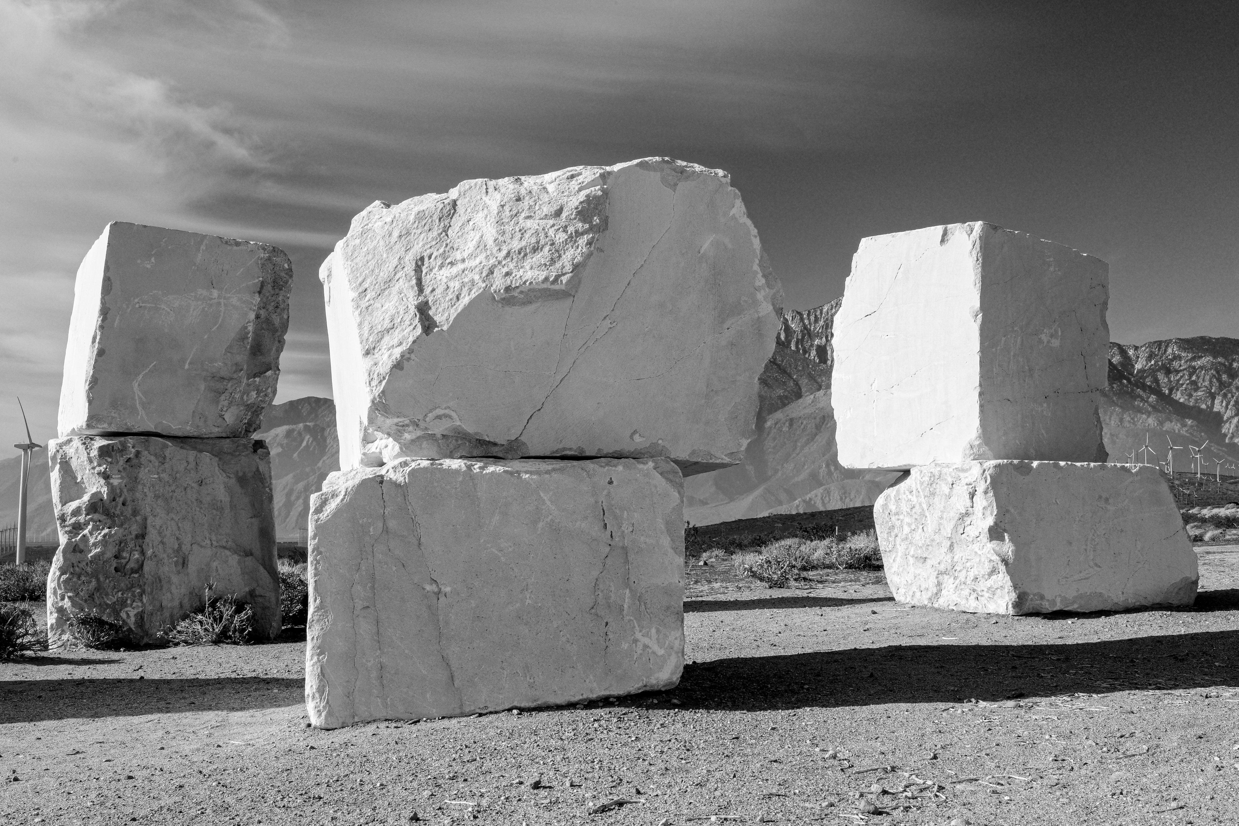 In The Act of Being Together, artist Jose Dávila uses unaltered marble blocks sourced from a quarry just across the U.S.–Mexico border, creating a dialogue between the material’s absence at its origin and its presence in the California desert. The journey across the border and the seemingly spontaneous arrangement of the stones evoke ancient ruins while hinting at future civilizations. The work encourages viewers to reflect on displacement, transformation, and the cyclical nature of endings and beginnings.